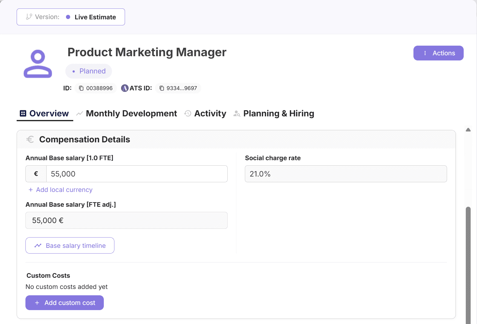 Basqo consolidates actuals and forecasts, along all cost types - salaries, bonus, social charges and provisions