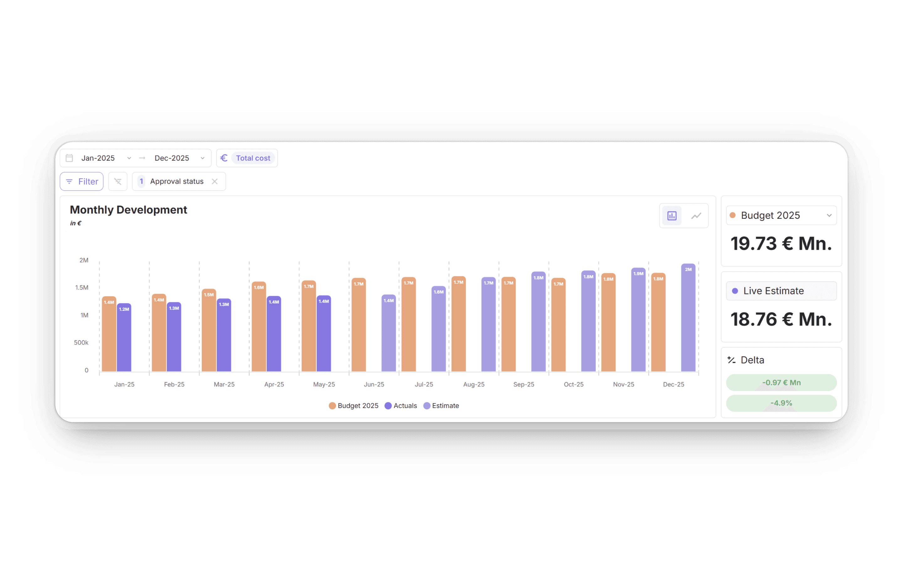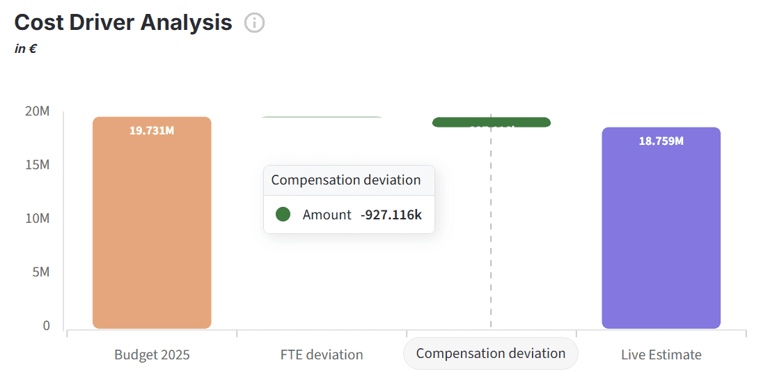 Keep an eye on core people metrics with automatically calculated FTE and cost developments and deviations