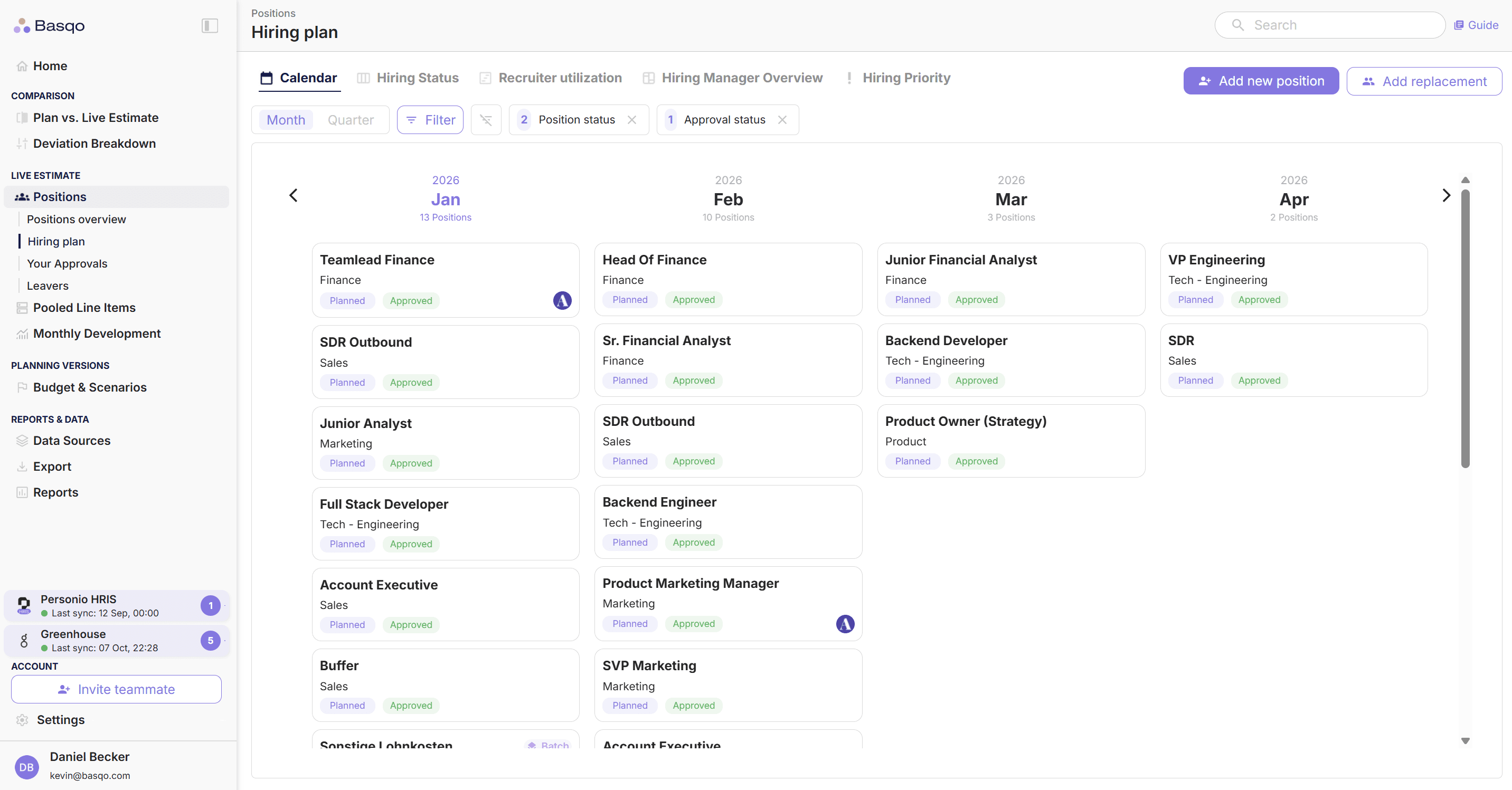 Basqo integrates with your HRIS, ATS and replaces your existing hiring plans living in spreadsheets.